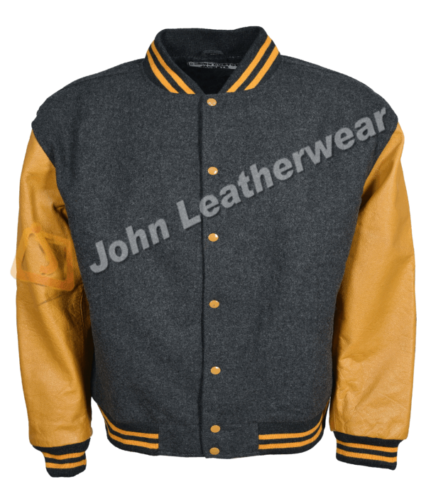 ribbed cuffs and hem for a snug fit, and classic snap-button closure.